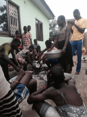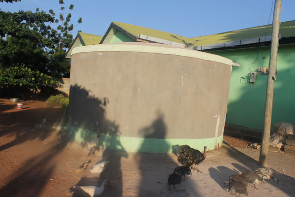 Nachdem uns Silas und Gideon vom Busbahnhof mitten in der Nacht abholten, fuhren wir den für mich vertrauten Weg ins Waisenhaus. Es fühlte sich an wie nach Hause kommen, wie bisher jedes Mal, wenn ich die Kinder in Ghana besuchte. Ich erkannte die Straßen, die Werbeplakate, einige Gebäude und Straßenstände wieder. Es war 3 Uhr als wir im Bett waren und waren beide so aufgedreht, dass wir nicht wirklich schlafen konnten. Montag war ein Feiertag, so hatten wir Glück, dass alle Kinder zu Hause waren, als wir aufstanden. Zunächst eher zögerlich begrüßten uns die Kids. Vor allem die kleinen Jungs, die mittlerweile natürlich nicht mehr so klein sind, waren „super cool“ und wollten keine Umarmung. Die Zurückhaltung war allerdings nach ein paar Stunden aufgehoben und seitdem nehmen uns die Kinder jeden Tag vollkommen ein. Es wird Fußball gespielt, gelesen, gemalt, Springseil gesprungen, Film geguckt, gekuschelt und erzählt. Da das Waisenhaus mit 16 Kindern laufen muss, hat natürlich auch jeder seine häuslichen Aufgaben. Um zu unterstützen, sind Maria und ich dann natürlich auch eingespannt beim Kochen, Wäsche waschen, Tiere bewirtschaften, Samen sähen, Fahrräder reparieren, Wasser holen usw. Das Waisenhaus ist jedes Mal anders, wenn ich wieder hier bin. Dieses Mal fällt mir eines am meisten auf: Vergrößerung der eigenen Bewirtschaftung. Es gibt viele Hühner, 3 Schafe, Perlhühner, Gänse und Truthähne. Außerdem ein Maisfeld und 3 Reisfelder. Das ist großartig, da man so auch einige Produkte aus dem eigenen Anbau bekommt, jeden Tag frische Eier hat, ab und an mal ein Huhn schlachten kann und dabei natürlich auch Kosten spart, weil man nicht alles in der Stadt kaufen muss. Gleichzeitig hat man natürlich auch ein bisschen mehr zutun, aber da die Kinder mittlerweile alle größer sind, helfen natürlich alle mit. Auch Maria und ich lernen, wie man Reissamen säht, schauen zu wie man Hühner schlachtet und gehen auf Eiersuche. Außerdem ist es Silas, dem Gründer und Papa des Waisenhauses, ein Anliegen, den Kindern beizubringen, wie man sich selbst versorgen kann, damit sie später auch davon profitieren können.