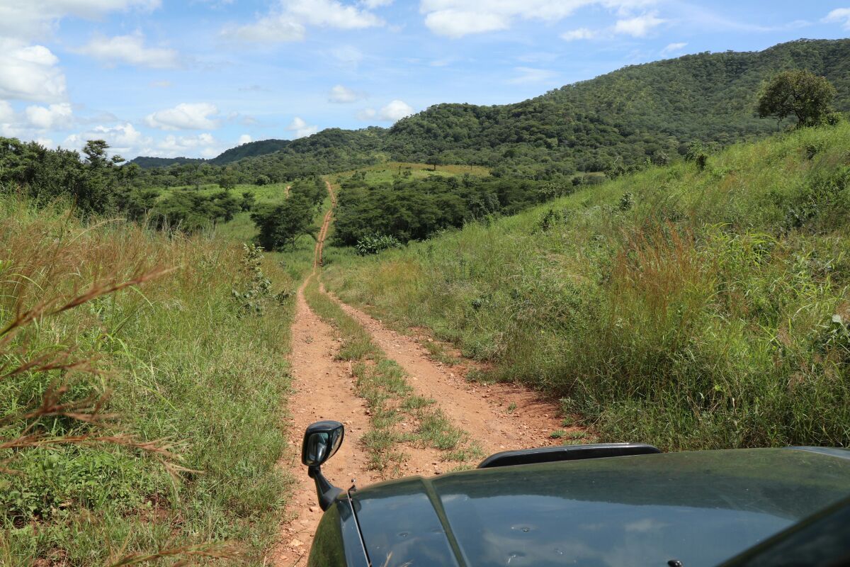 Die Sonne schien, wir fuhren aus Lusaka raus, entlang einiger Dörfer mit abwechselnd asphaltierter und erdfarbener breiter Straße. Die Musik war gut, das Navi funktionierte. Wir quatschten, wechselten uns mit dem Fahren ab und manövrierten uns, zunächst ab und zu, vorsichtig über größere Schlaglöcher, quasi in Zeitlupe, damit das Auto heile bleibt. Solche Straßen kannten wir beide aus anderen Reisen. Die Schlaglöcher hinterlässt nun mal die Regenzeit, die in diesem Breitengrad sehr stark sein kann. So fuhren wir weiter. Weiter weg von der Stadt, immer weniger Menschen begegneten uns, fuhren wir eine schmalere Straße entlang, mit atemberaubenden Blick – eine hügelige Landschaft mit üppiger Pflanzenwelt. Das ist der letzte positiv atemberaubende Augenblick, bevor ich mich an die nächste Szene erinnere.