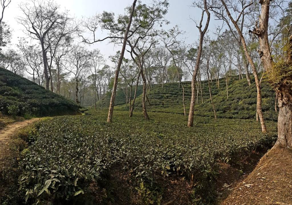 Es war einmal das kleine Städtchen Sreemangal. Es befindet sich im Osten von Bangladesch, nur etwa 5 km bis zur indischen Grenze. Sreemangal sollte unsere dritte Station in Bangladesch sein, weil eine Freundin einer Kollegin es empfohlen hatte. So fuhren wir mit dem Zug hin. Eine entspannte Fahrt in einem alten Waggon mit grüner, unaufgeregter, sich wiederholender Landschaft, die an einem vorbeiflog. Wir wussten es bei Ankunft natürlich noch nicht, aber Sreemangal sollte unser neues Atbara werden. Ui Ui Ui, hier wird hoch gepokert. Das neue Atbara steht und fällt für mich mit unserem Gastgeber Tapas. Durch seine Bekanntschaft durften wir in eine kleine neue Welt eintauchen, die immer in unseren Köpfen bleiben wird. Genau wie Atbara würde Sreemangal nicht in den hunderten Reiseführern stehen, die man sowieso nicht in den Bücherläden über Bangladesch findet. Aber würde man diese Reiseführer finden, wäre Sreemangal vermutlich nebenbei erwähnt, aber sicher nicht die Hauptattraktion. In unseren Herzen war sie es.